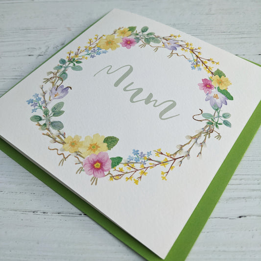 Square Greetings Card - Spring Floral Wreath - Mum
