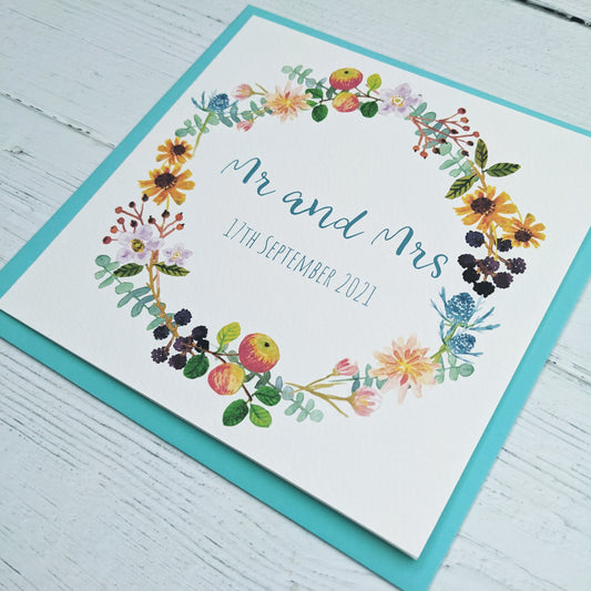 Greetings Card - Autumn Wreath - Happy Anniversary