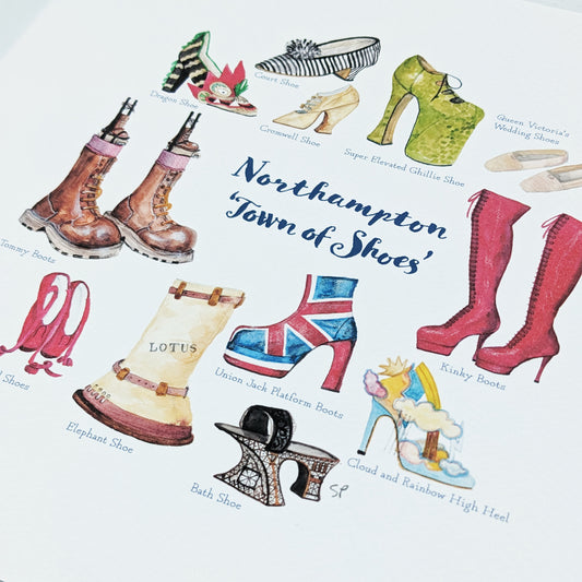 Watercolour Art Print - Northampton Museum- Town of Shoes