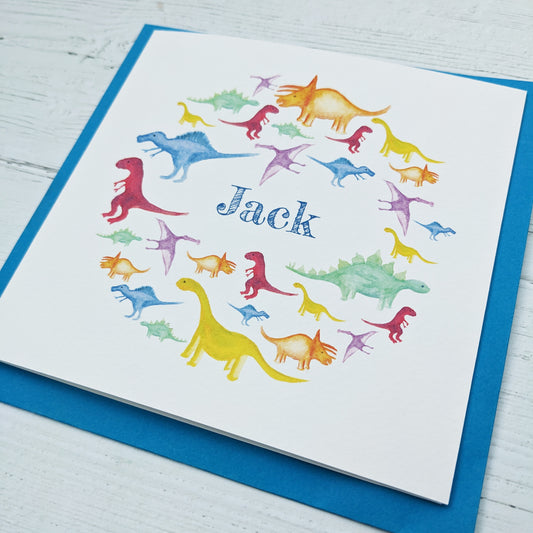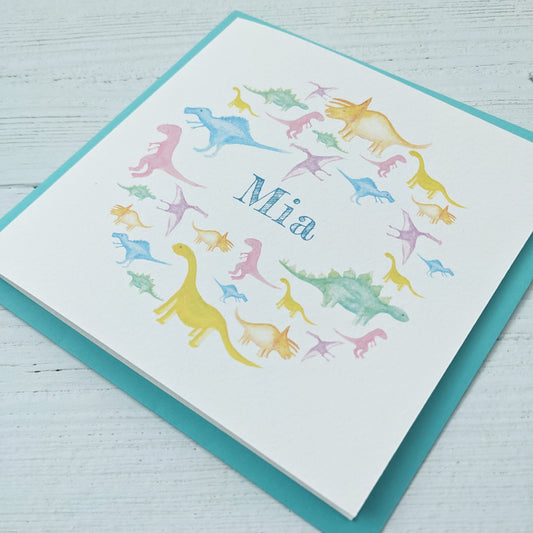 Personalised Greetings card - Dazzling Dinosaurs Pastel