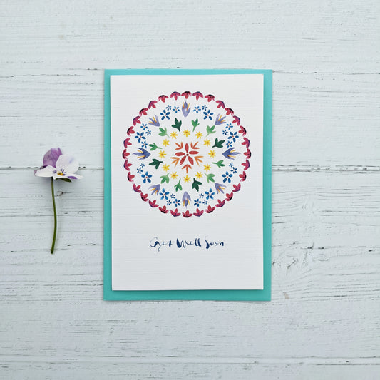 Greetings card - Get Well Soon - Rainbow flowers