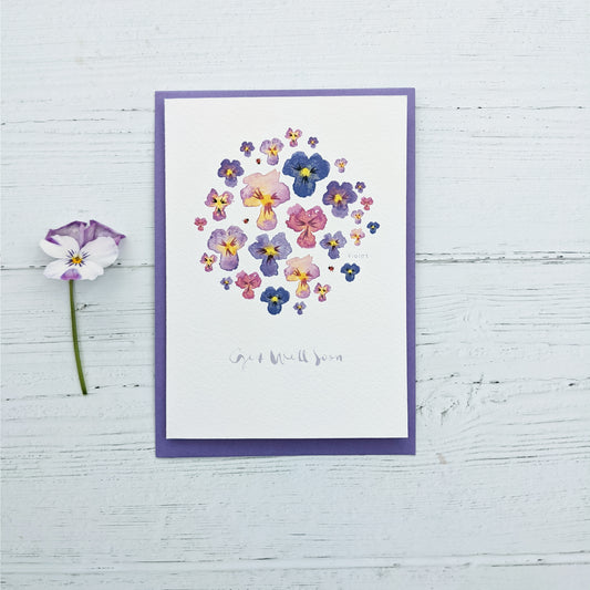 Greetings card - Get Well Soon - Violets