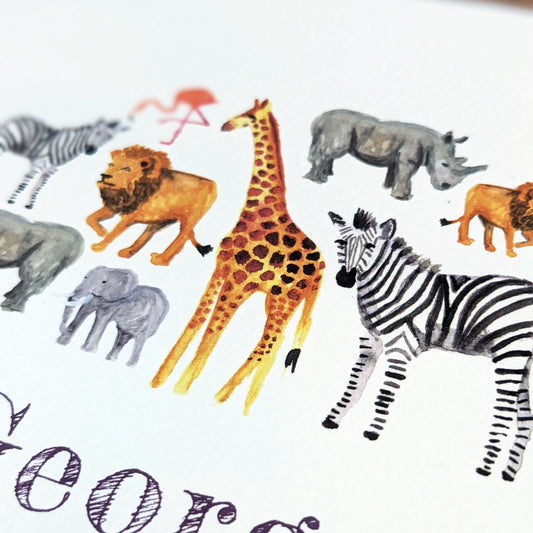 African Safari is inspired by the wildlife you might see on Safari in Tanzania or Kenya. Featuring the African elephant, zebra, giraffe, rhinoceros, flamingo, vervet monkey, red billed hornbill and swallowtail butterflies!