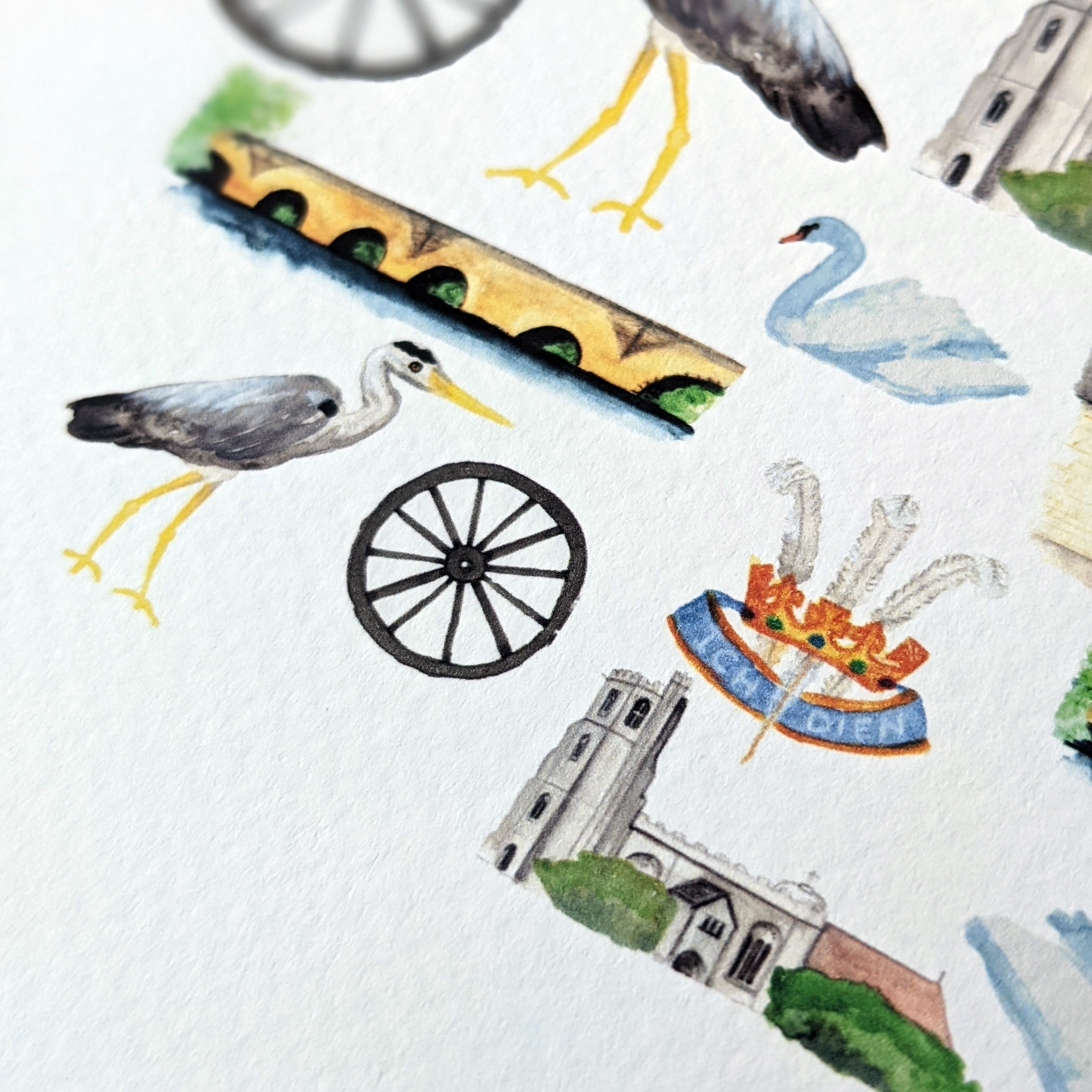 Watercolour Art Print - A Local Collection - Butterfly Bridge, Bedford