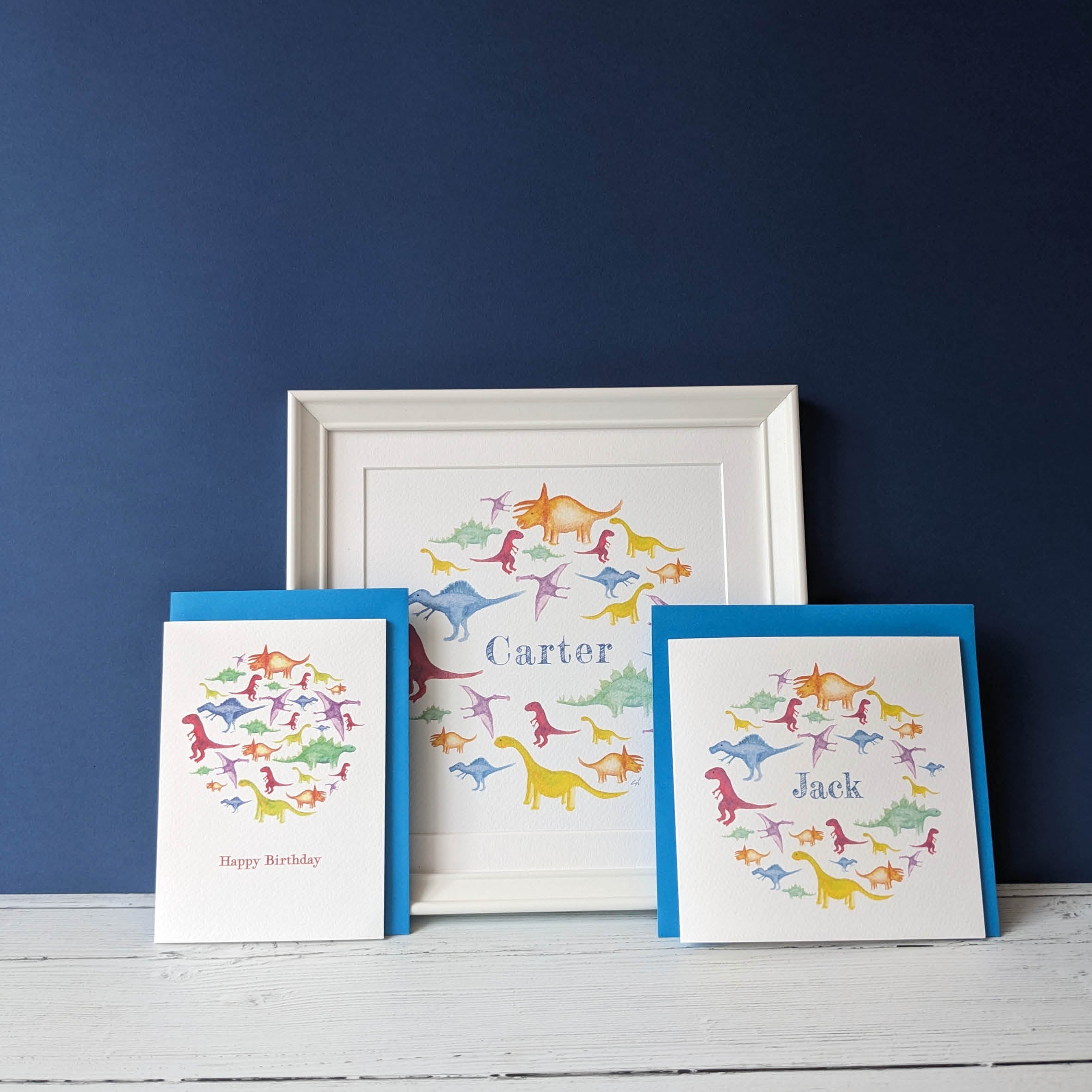 Personalised Watercolour Print - Dazzling Dinosaurs