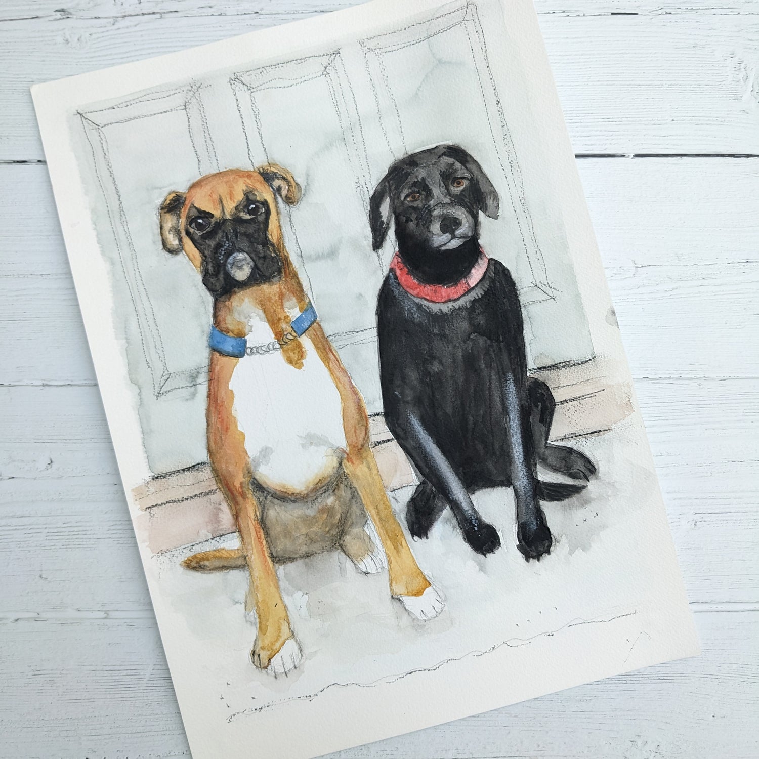 He had taken a photo of our family dogs which he loved, so why not make this into a gorgeous painting.
