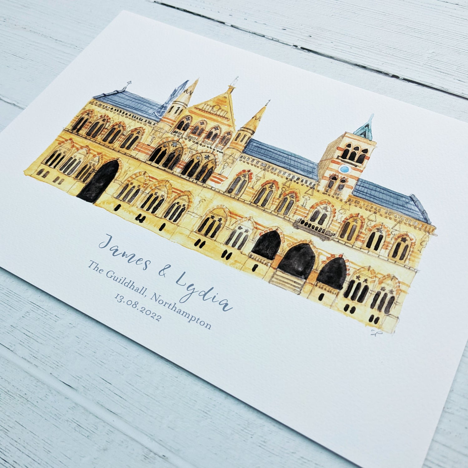 A stunning wedding venue in Northamptonshire and an iconic piece of architecture. This illustration is popular with many familiar with Northampton.